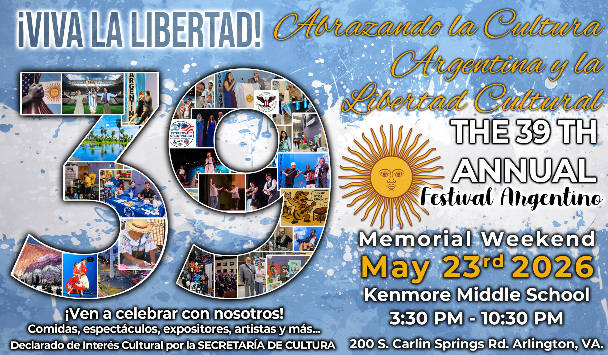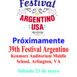 Próximamente 39th Festival Argentino -2026- 39th Festival Argentino el 26 de mayo, KENMORE AUDITORIUM, Arlington, Virginia. Mejor entretenimiento con comida gourmet, emoción y multitud multinacional.
