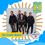 ZIP CODE Rock Band                                                                                                                              Formada en 2022, ZIP CODE Rock Band ofrece un show vibrante con clásicos de Hombres G, Soda Stereo, Enanitos Verdes y más. Su sonido combina rock alternativo, pop rock y punk rock en español e inglés. La banda está integrada por Camilo Cruz (voz), Jorge Flores (guitarra), Laura De La Cruz (bajo) y José La Cruz (batería). Su propuesta busca inspirar a los jóvenes y despertar recuerdos en el público adulto. Con presentaciones en teatros y conciertos junto a reconocidos artistas, ZIP CODE Rock Band debutó en el Festival Argentino USA 2025, prometiendo una experiencia potente y memorable.